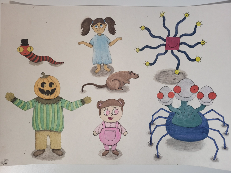 Aquarelverf oefeningen/character/background designs